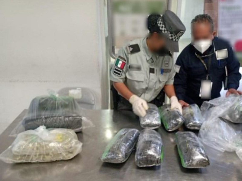 Integrantes de la Guardia Nacional (GN), en coordinación con elementos de la Agencia Nacional de Aduanas de México (ANAM), detuvieron a una persona que pretendía ingresar al país con aparente hoja y harina de coca, prohibida por la Ley General de Salud.
